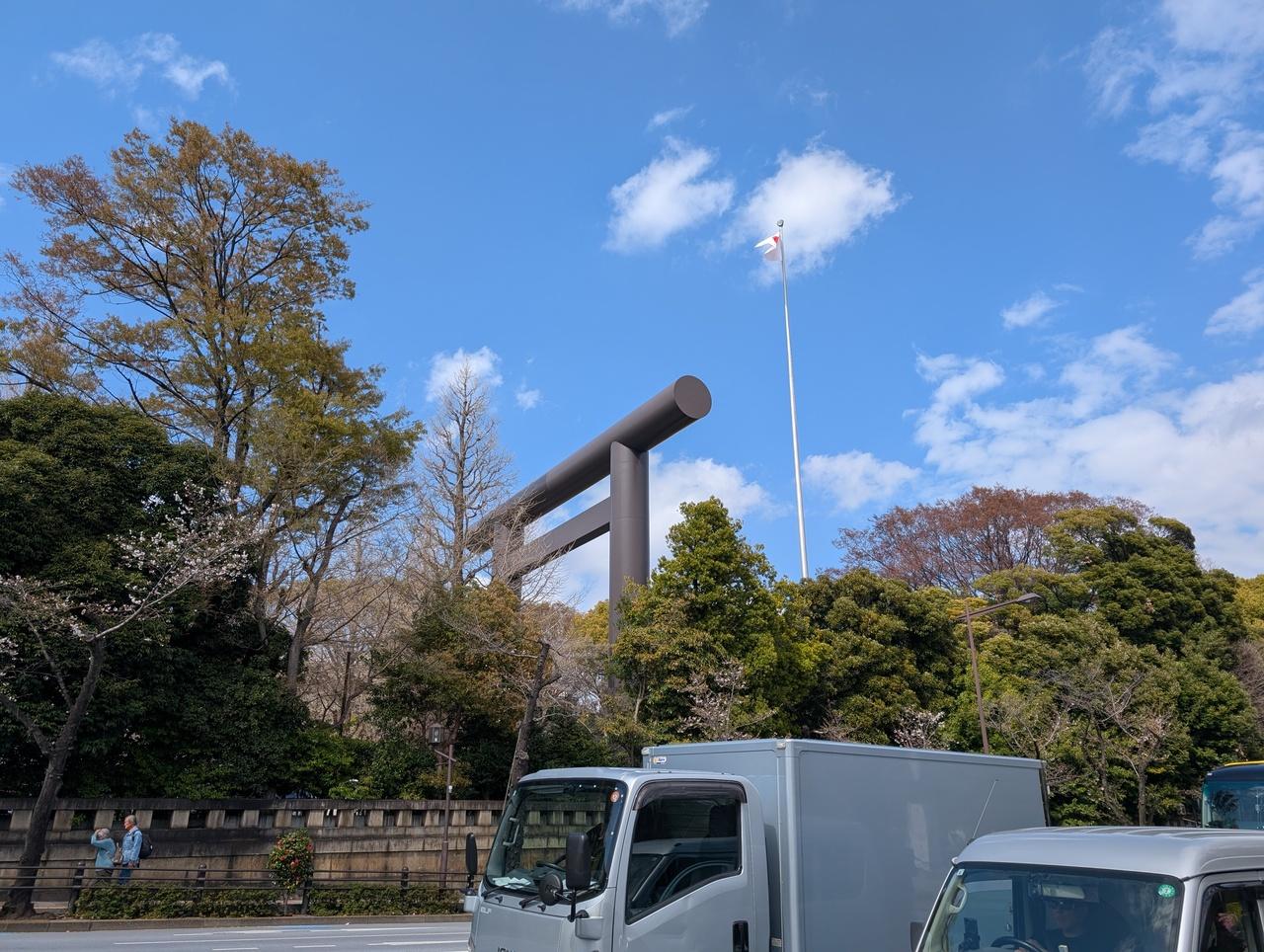 靖国神社の鳥居、この大きさと色に威圧感あってちょっとコワイ・・・