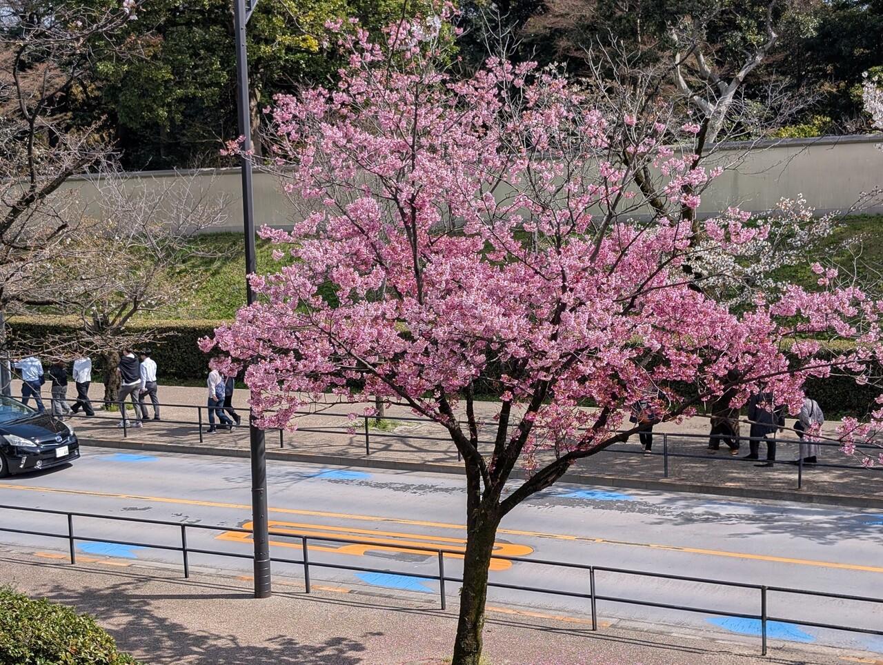 九段下駅を出ると、早速満開の桜!! -