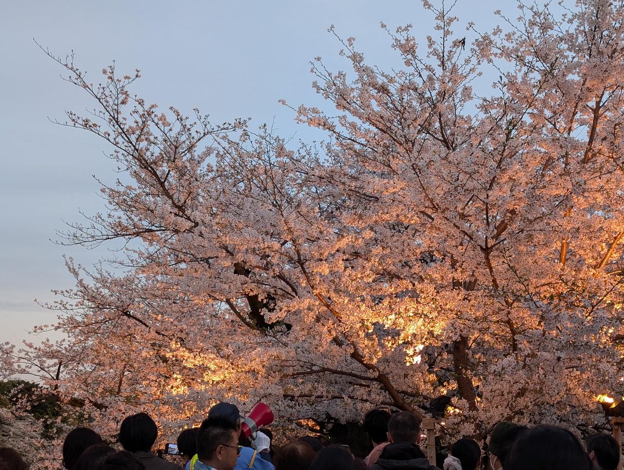 もっと暗い方がライトアップは映えるだろうけど、この後はもっと人が増えて更に歩きにくくなりそうなので、千鳥ヶ淵緑道までは足を延ばさず切り上げます。