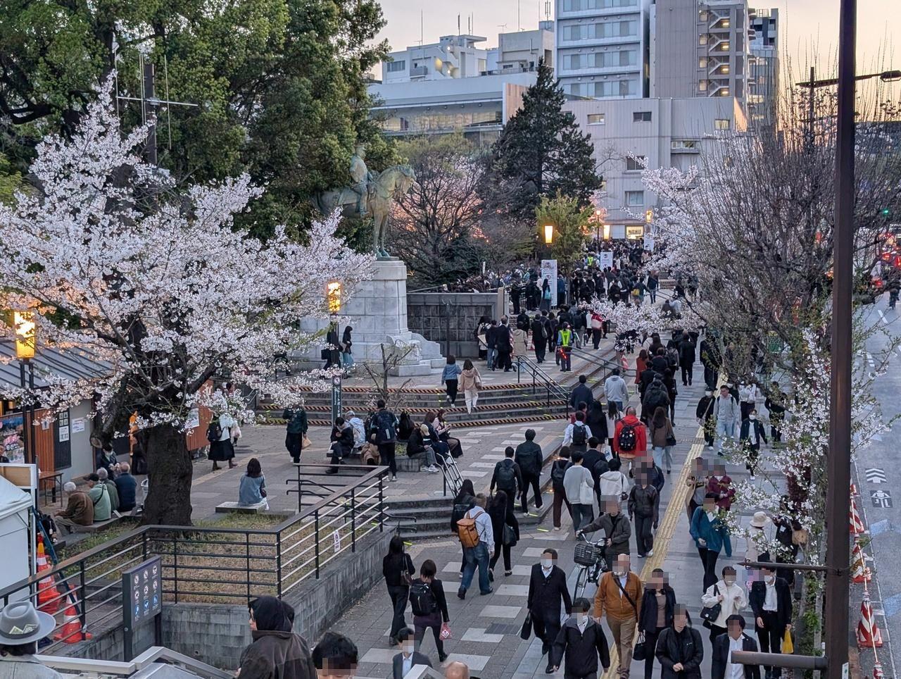 桜見物の人、会社帰りの人で溢れてます。 -