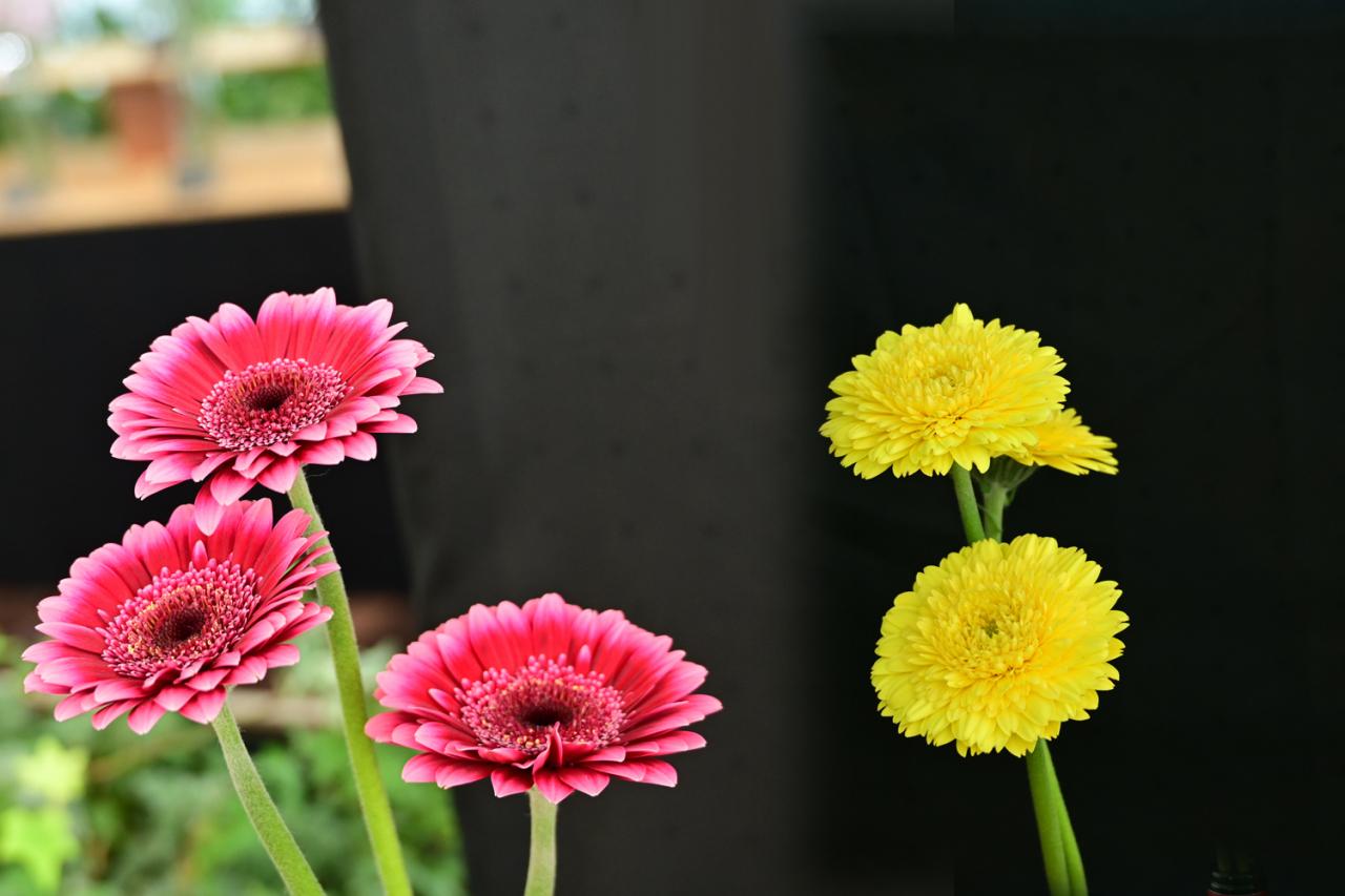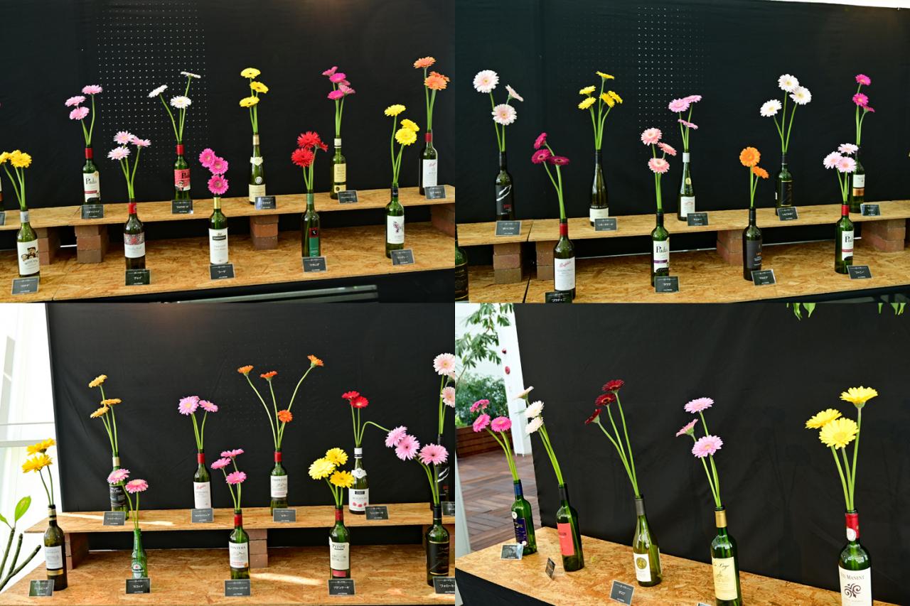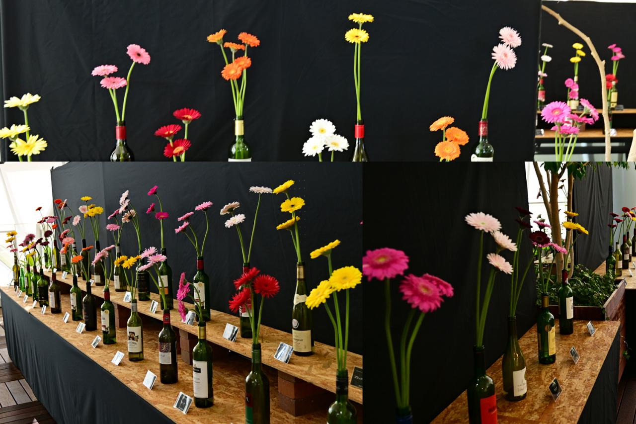 ガーベラの切り花を100品種展示しており、
