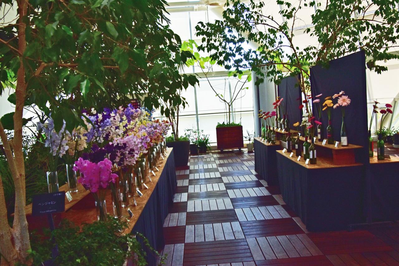 花姿や色が多彩な切花合計約100品種を展示。