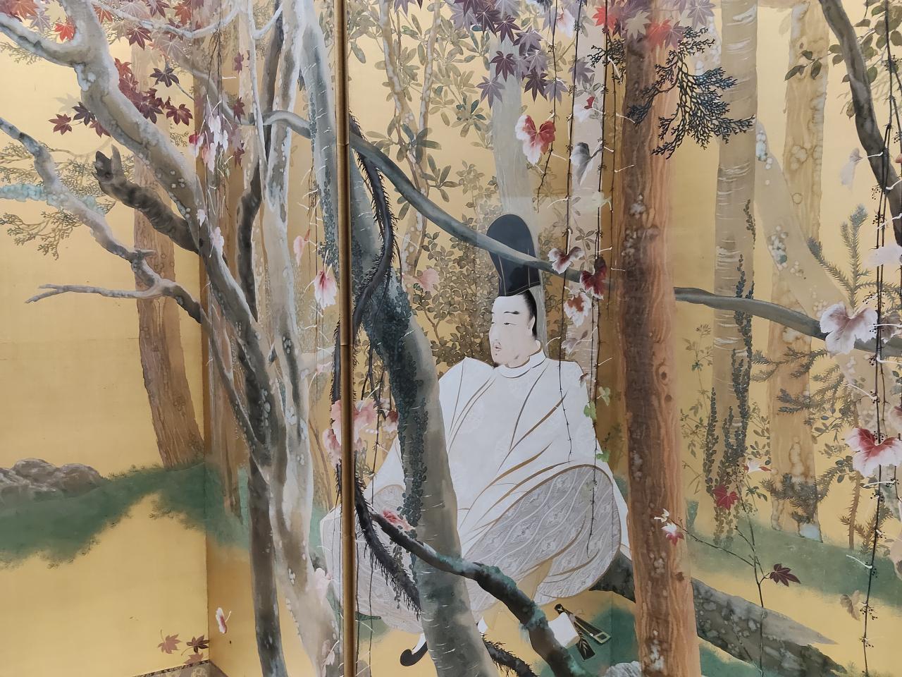 ”小倉山”。描かれているのは藤原忠平。彼が読んだ小倉山の紅葉の歌を題材にしている。