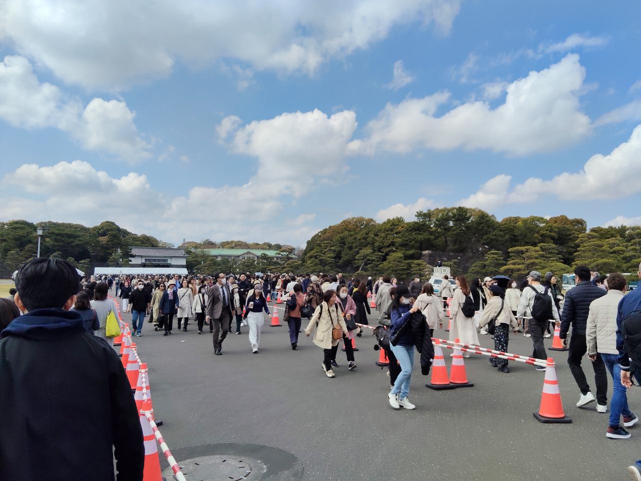 午後1時、坂下門前の皇居前広場に大勢のひとが行列している。毎日万単位の人出があるそうなので、数百人の行列だろう。警察官が整理に当たっている。