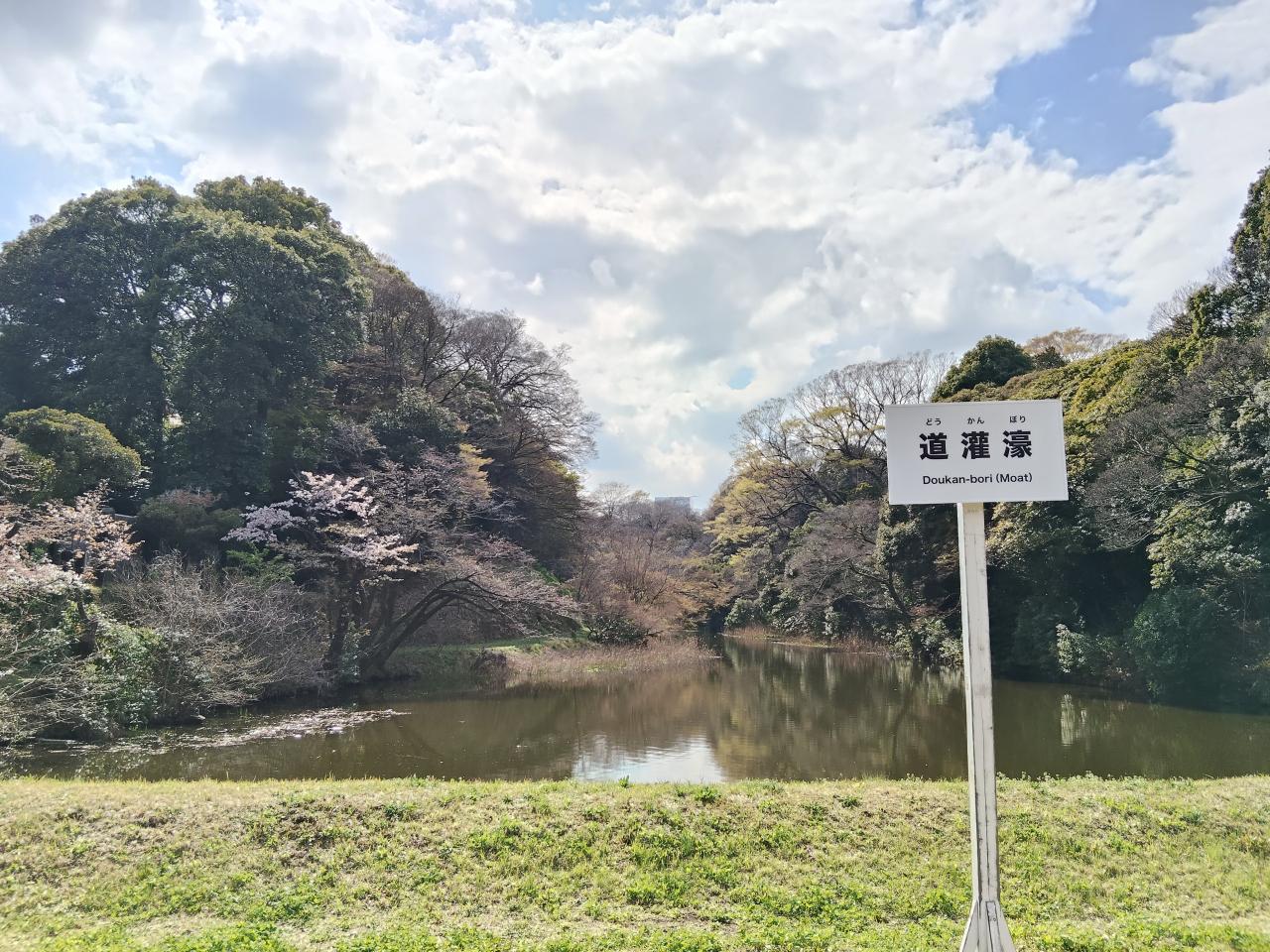 ”道潅濠”(どうかんぼり)。内堀と反対側、乾通りの左手にある。江戸城築城以前から、元からあった池のように見える。