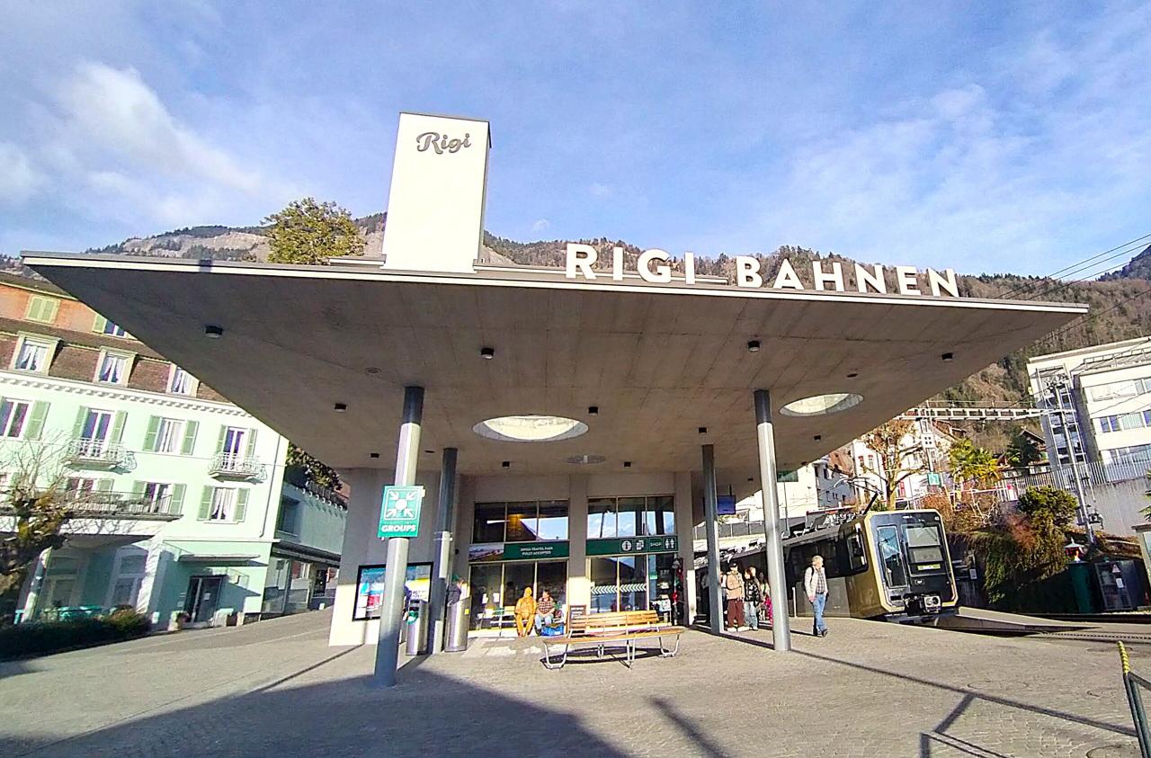 スイス鉄道を降りてリギ鉄道の方(右側)に進みます。