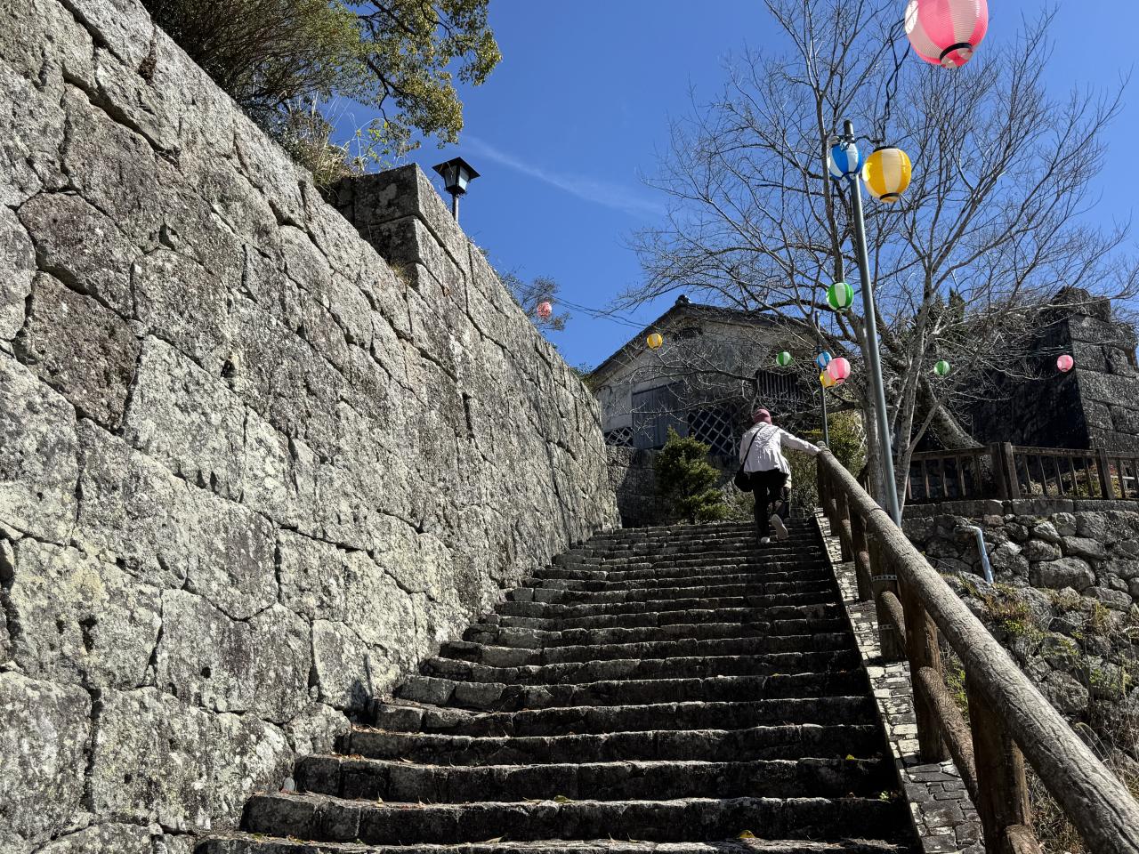 階段を上った先に旧天守がある。現在は石垣だけで建物は残っていない。