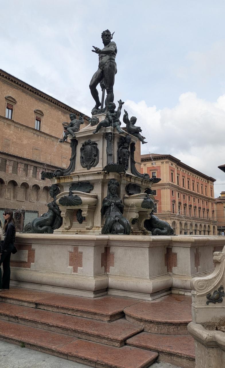 マッジョーレ広場のネプチューンの噴水。ネプチューンの足元の4人の海の精の姿はユニークです。