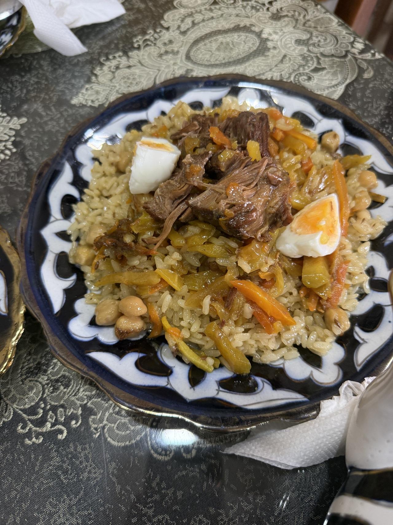 サマルカンドの初ディナーは口コミも良さそうなレストランで。