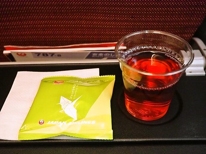 ドリンクはJALオリジナルの「スカイタイム ももとぶどう」味です。