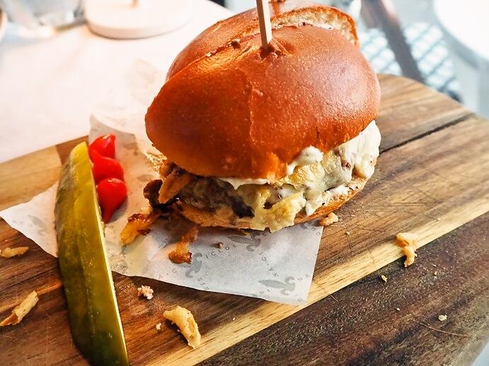 ふかふかのブリオッシュ生地のバンズと、じっくり炒められたキャラメリゼオニオンの甘さがもう最高。