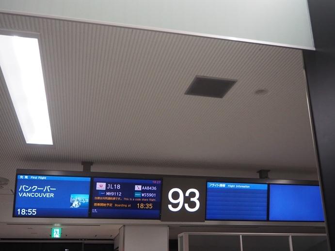 成田空港18:55発 日本航空018便でバンクーバーへ