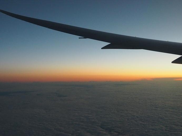 機内から眺める景色が好きです。空のグラデーションが綺麗。 -