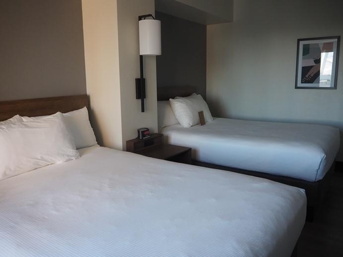私たちはダブルベッド2台と、プライベートバスルーム付きの部屋を予約しました。 -