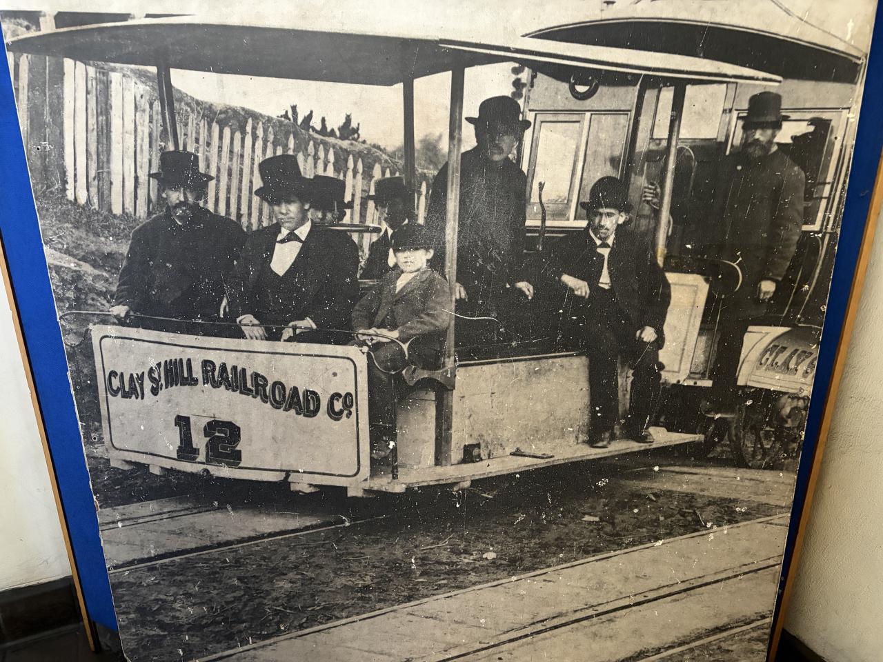 目の前をケーブルカーが通過。