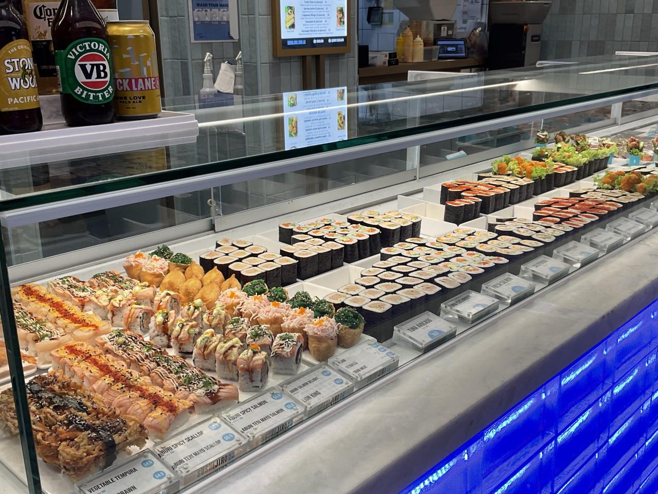 空港内のお寿司屋さん。オーストラリアのお寿司はケーキみたいです。