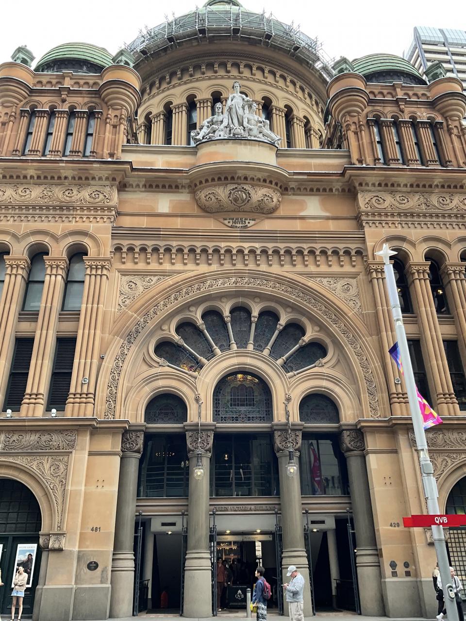 クィーンヴィクトリアビルディング通称QVBです。ここはショッピングセンターになっており高級店がたくさん入っています。1989年英国ヴィクトリア女王への敬意を評して完成、老朽化により一度取り壊し計画があったが、歴史的価値を見直され、1986年に大規模な改修が行われ現在に至ります。