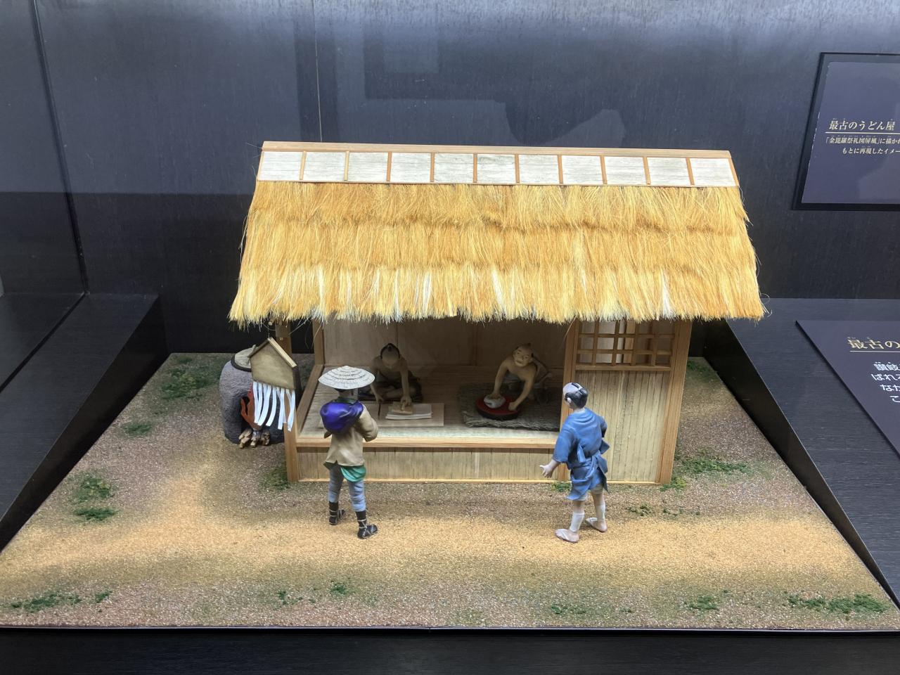 讃岐うどんに関する最も古い資料は、金力比羅宮に伝わる「金昆羅祭礼図」と呼ばれる元禄時代(約300年前)の岸風絵で、当時の門前町の風景が克明に描かれたなかに3軒のうどん屋があります。 -