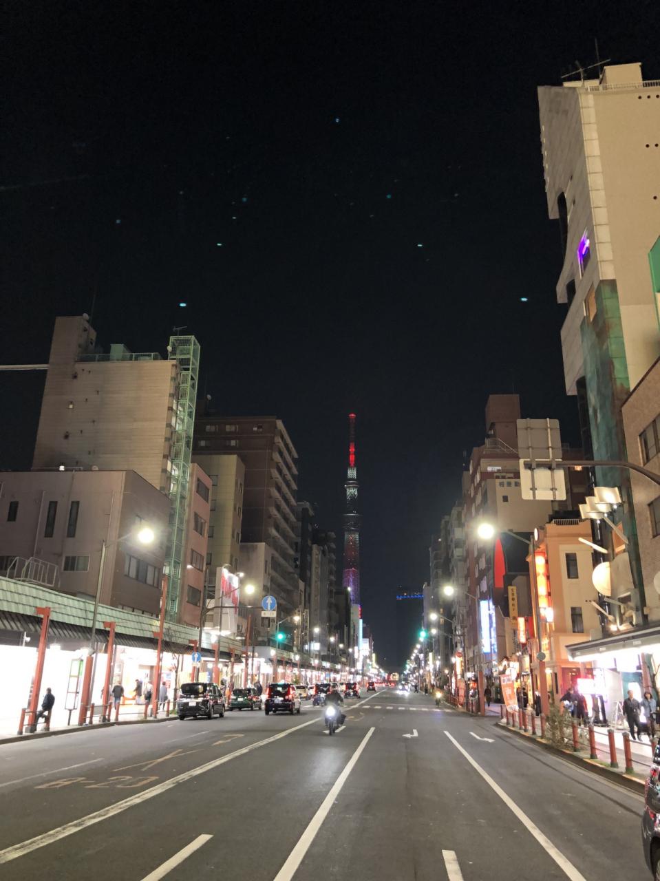 食後は夜の浅草を散策します。
