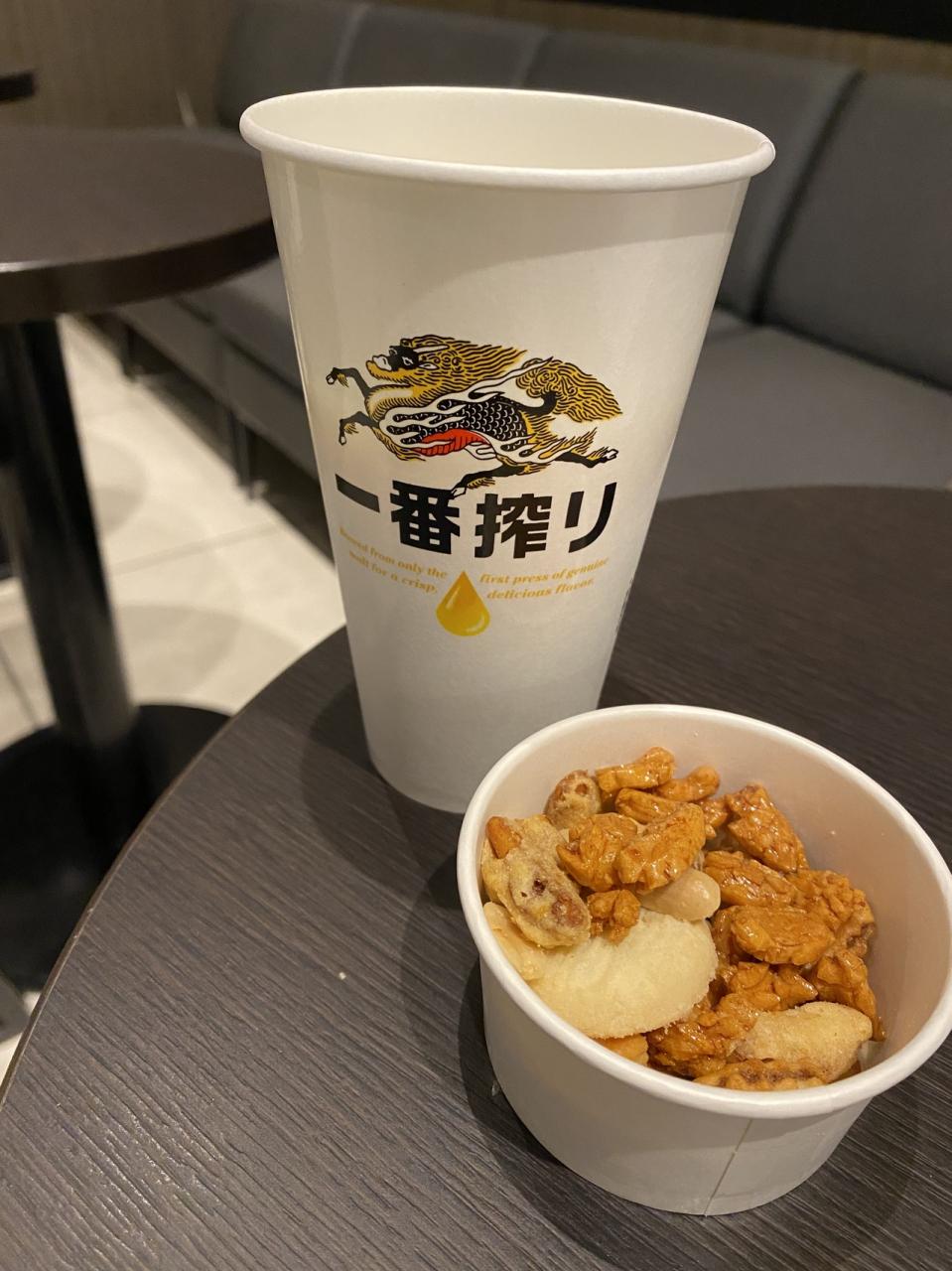 とりあえずラウンジに行って生ビールとおやつ。