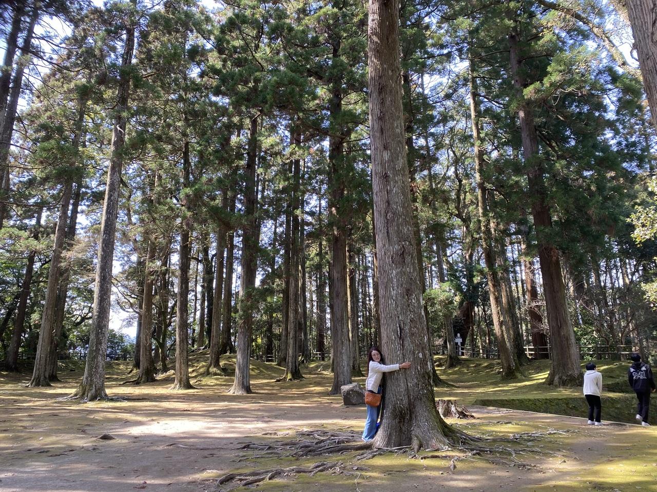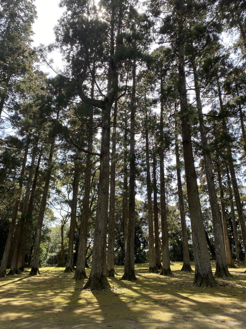 大きな飫肥杉、およそ樹齢140年。苔むしており、静かで、ラピュタに出てきそうな場所です。 -