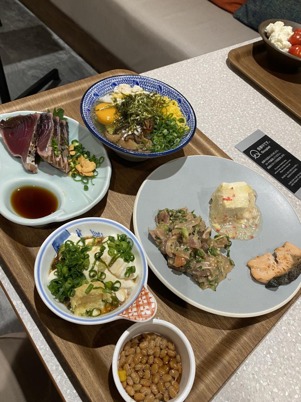 鰹のお刺身、豆腐、丼など。