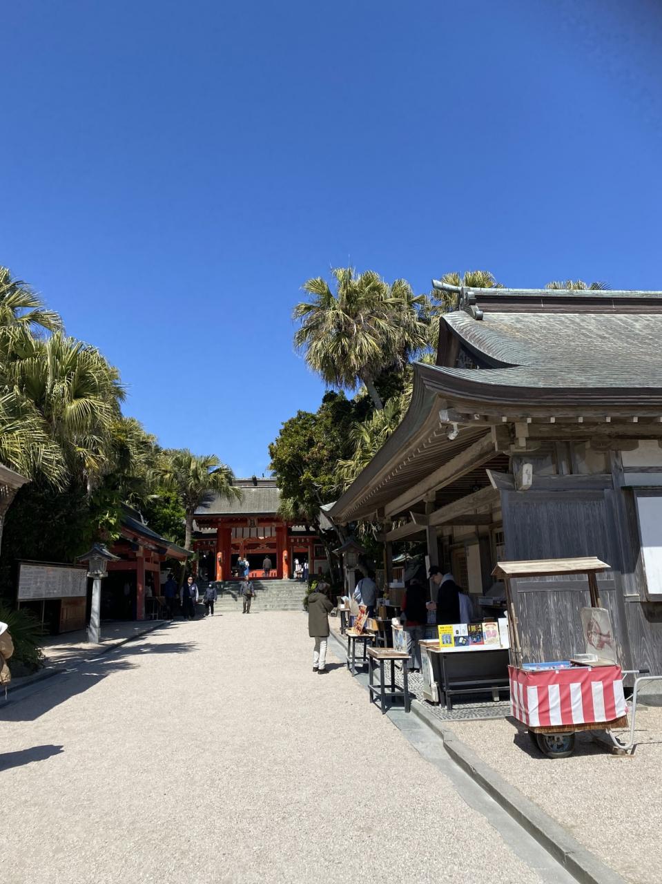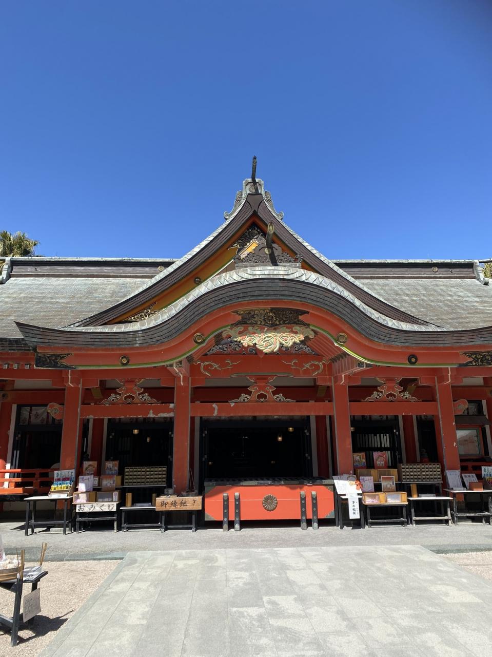朱色の色彩と、空の青さの対比がまぶしいです。 -