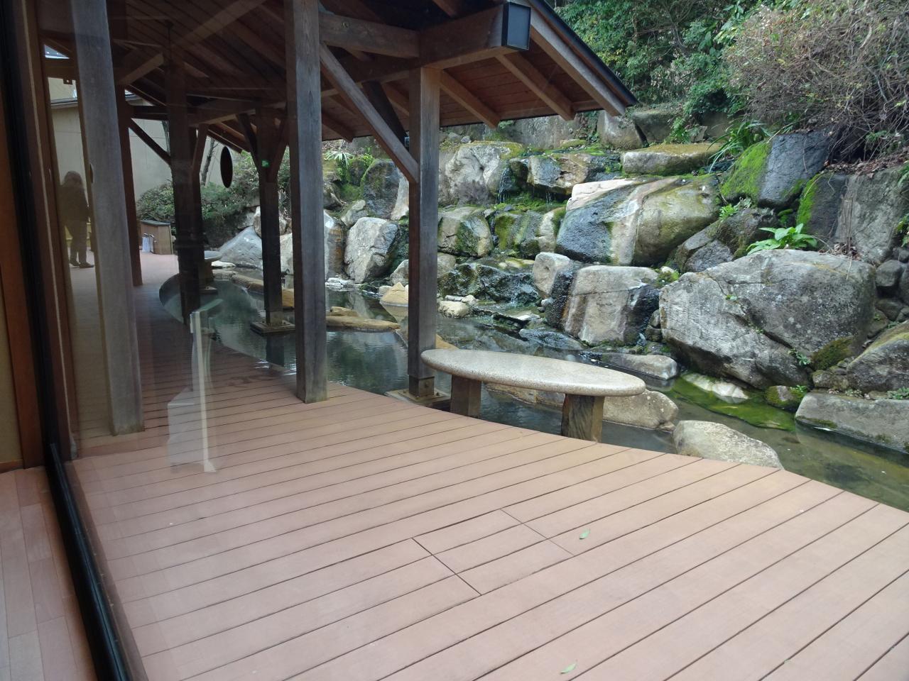 内湯も露天も広く種類も多くのんびりと温まれます -