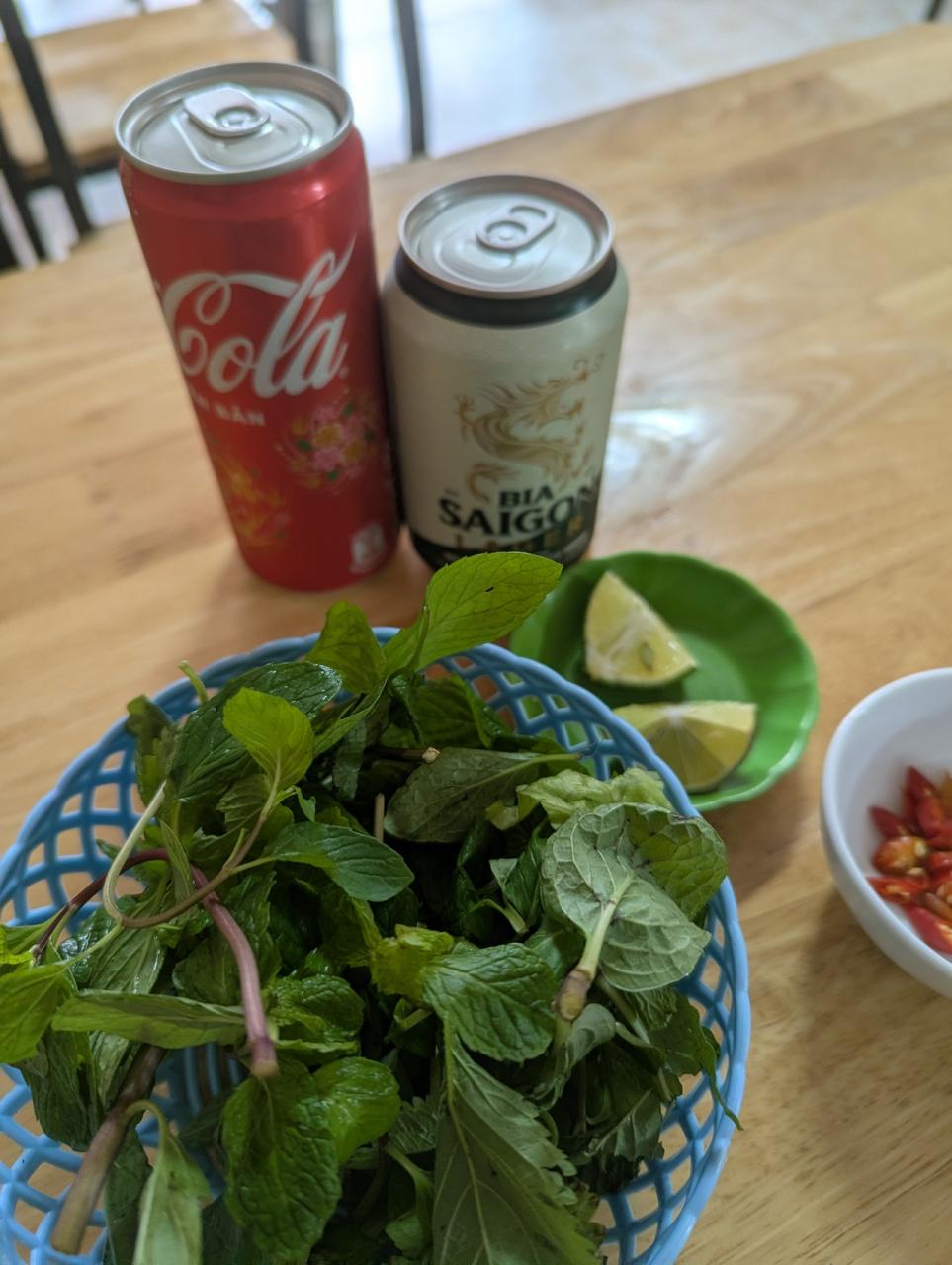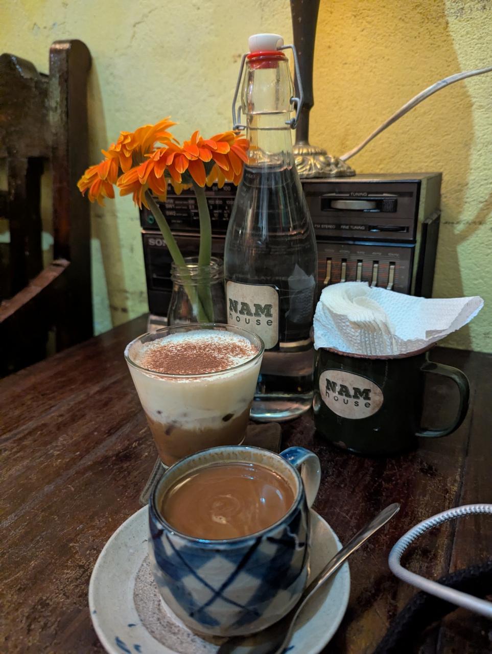 ベトナムのカフェは、水やお茶をつけてくれるので嬉しいです。