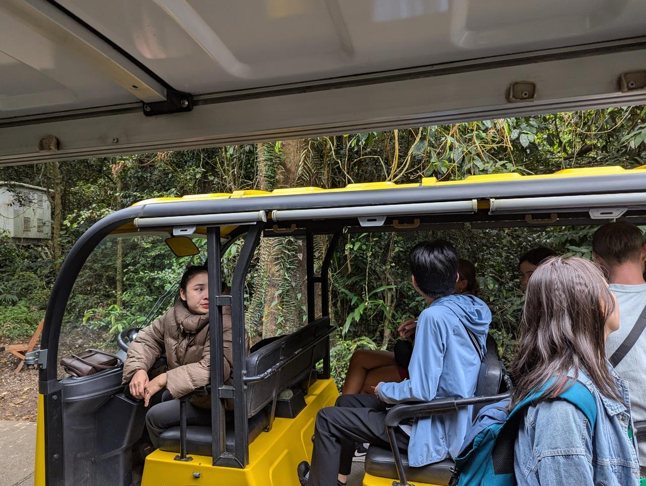 まずは、パラダイス洞窟へ電動カートに乗り換えて向かいます。 -