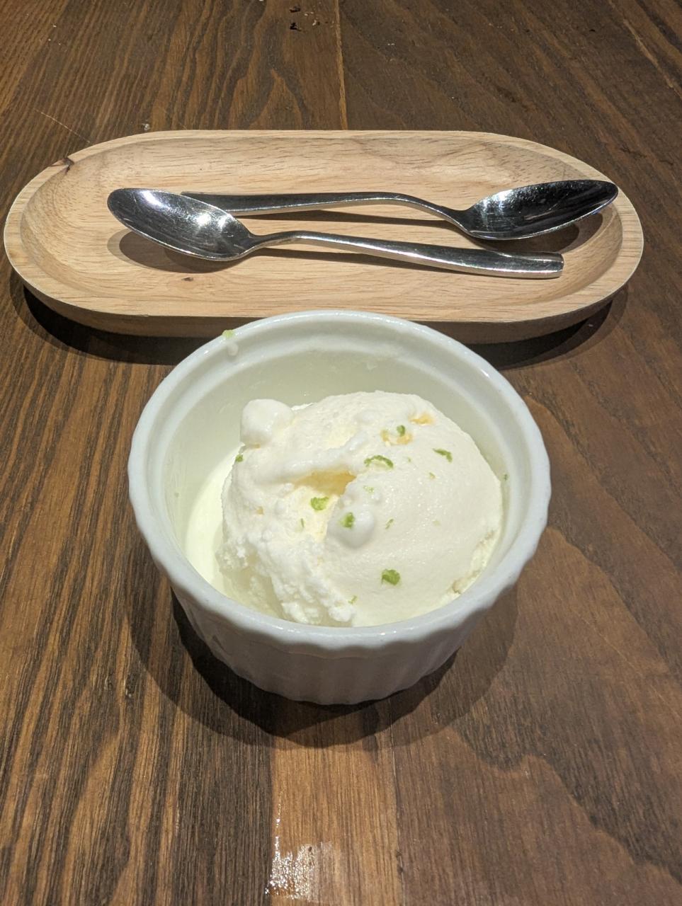 「混んでいて焼き上がりまで時間が掛かったのでお詫びです。」と、ヨーグルトアイスをサービスしてくれました。