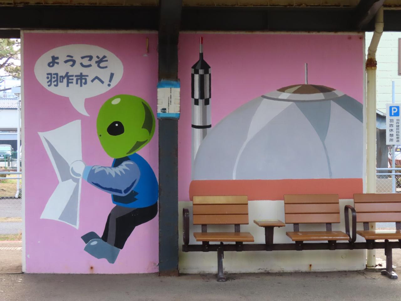 鉄道では初めての能登地方。「羽咋駅」で途中下車、宇宙人がいっぱいいてビックリした。