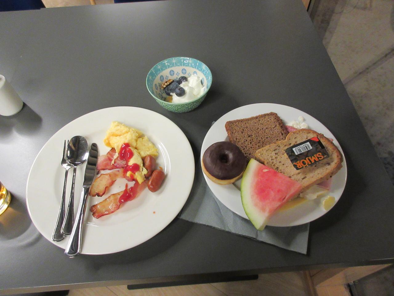 兆色はビュッフェ(バイキング)です。アイスランドのヨーグルトを毎日食べました。