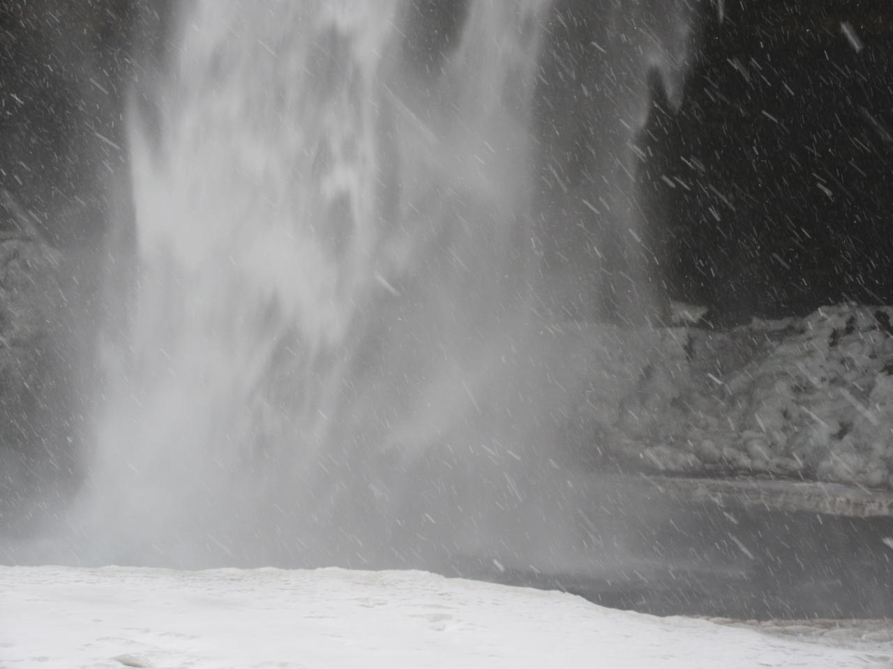 さらに近づくと水しぶきがかかります。スキーウェアにして良かったと思いました。