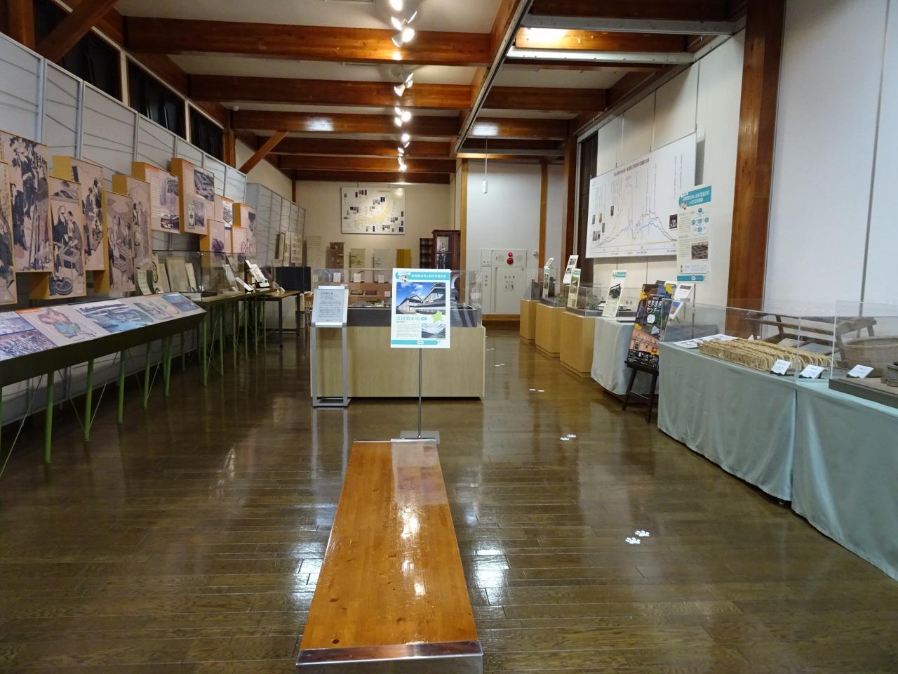 絹産業の歴史がわかる年表や器具の展示