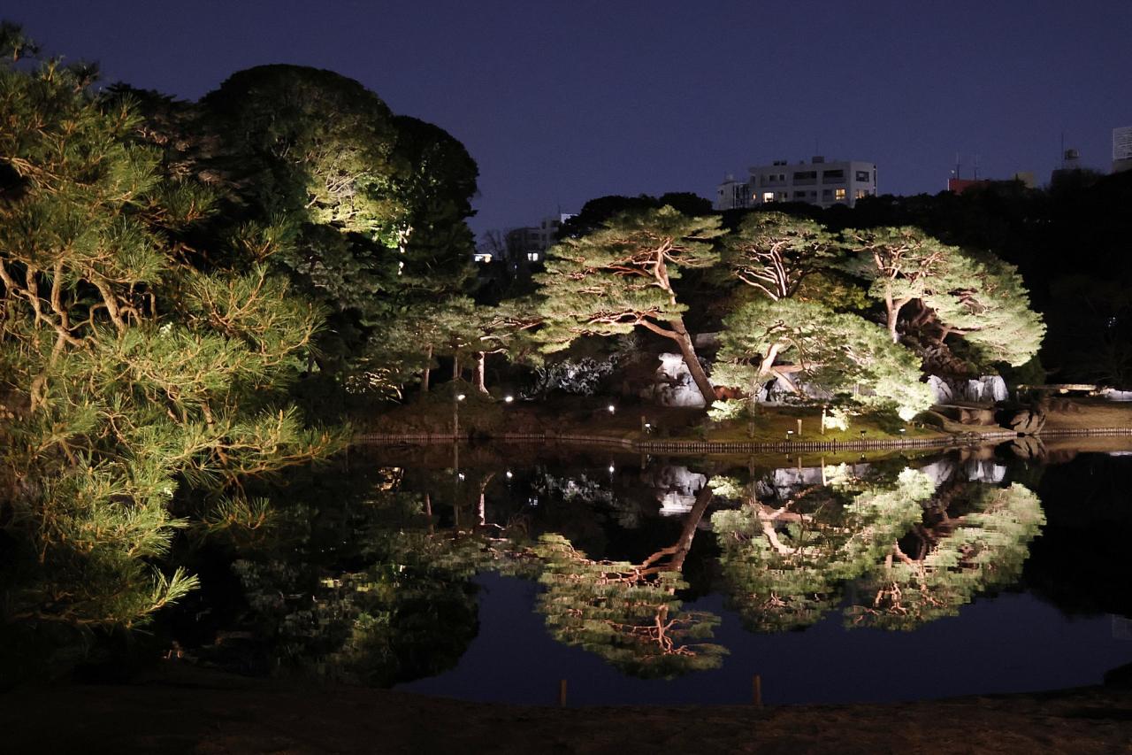 ライトアップされた大泉水