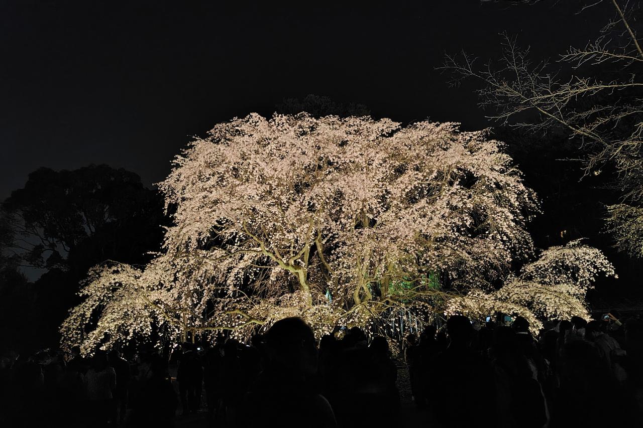 ライトアップされたシダレザクラ
