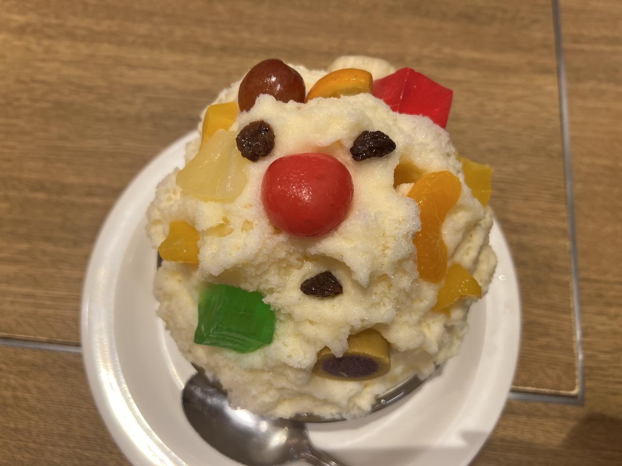 雨に濡れてめちゃくちゃ寒かったけどこれはこの日にしか食べに行く時間がなかったからと、天文館むじゃきの白熊。本当は本店に行きたかったけどね。