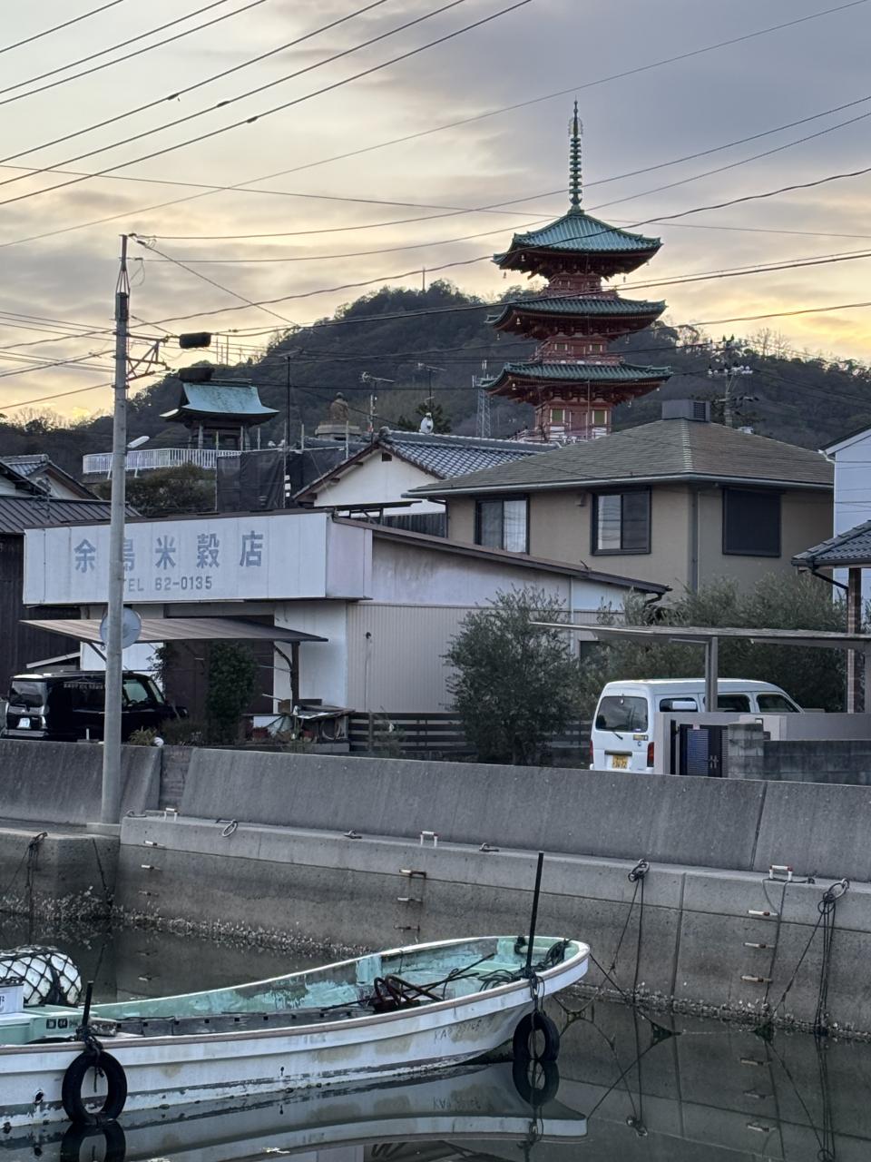 土庄町本町の様々な所から見える西光寺の三重塔(誓願之塔)です。
