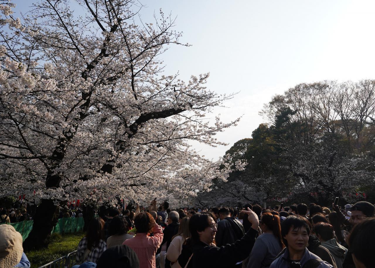 日本人だけでなく、多くの外国人観光客が桜を楽しでいました。