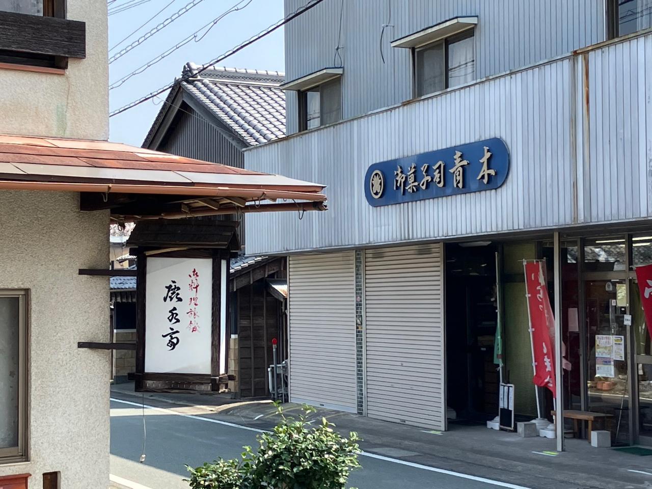 和菓子を売る店というよりは雑貨店のような雰囲気でした。手前左に見えるのは相可宿最後の旅籠「鹿水亭」で、手塚治虫も泊まったことがあるとのこと。旅館休業後は鮎の甘露煮を製造販売していたそうですが、平成23年(2011年)にご主人が亡くなり廃業したのだそうです。青木製菓 グルメ・レストラン