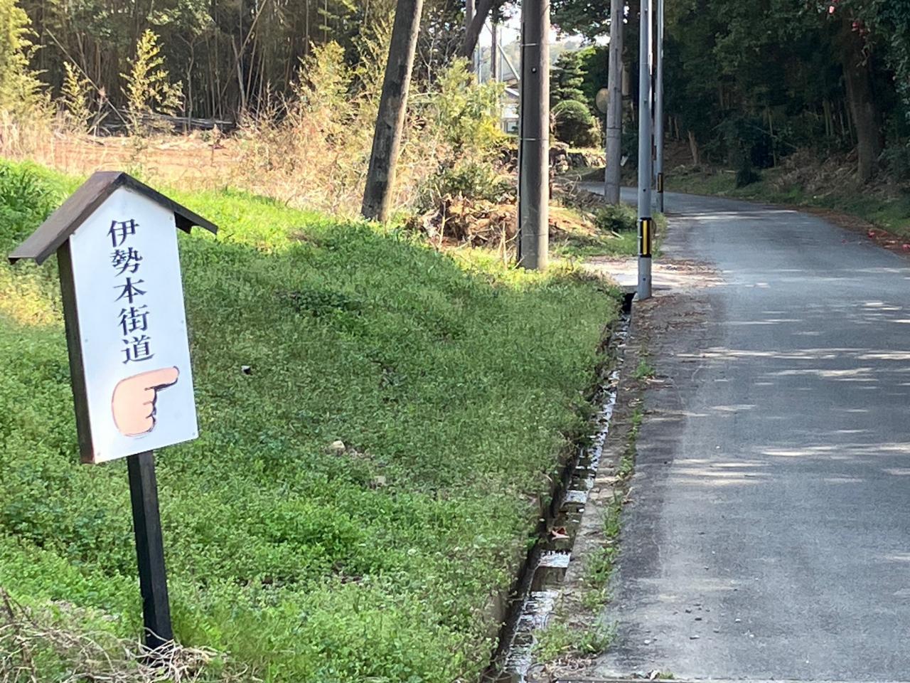 相可周辺ではこの指差しで街道を示す案内板をいくつか見かけました。この案内板、旧道に入る分岐路に立っているので、大変助かります。 -