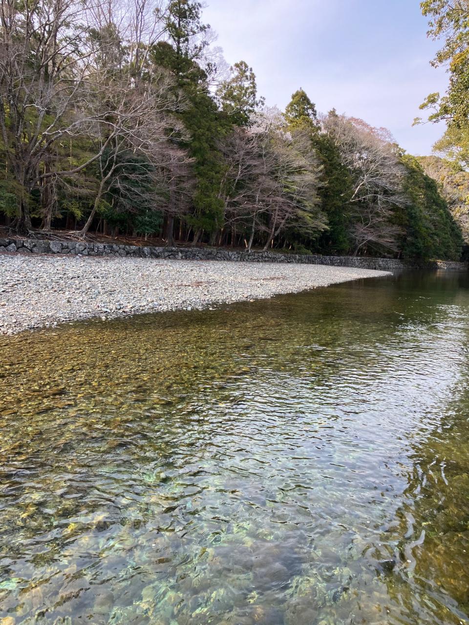 内宮御手洗場(みたらし)から見た五十鈴川(いすずがわ)