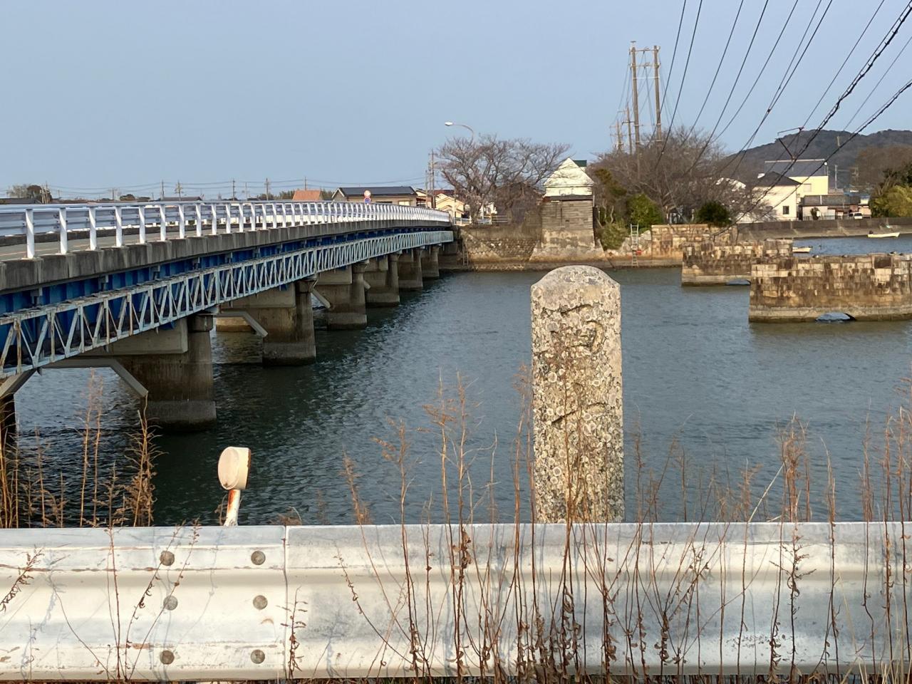 明治の初め頃には橋があったようですが、この辺りは干満の差が大きいようなので、徳川の御代は干潮時は歩いて渡り、満潮時は舟や舟橋で渡っていたのではないかと勝手に妄想しています。 -