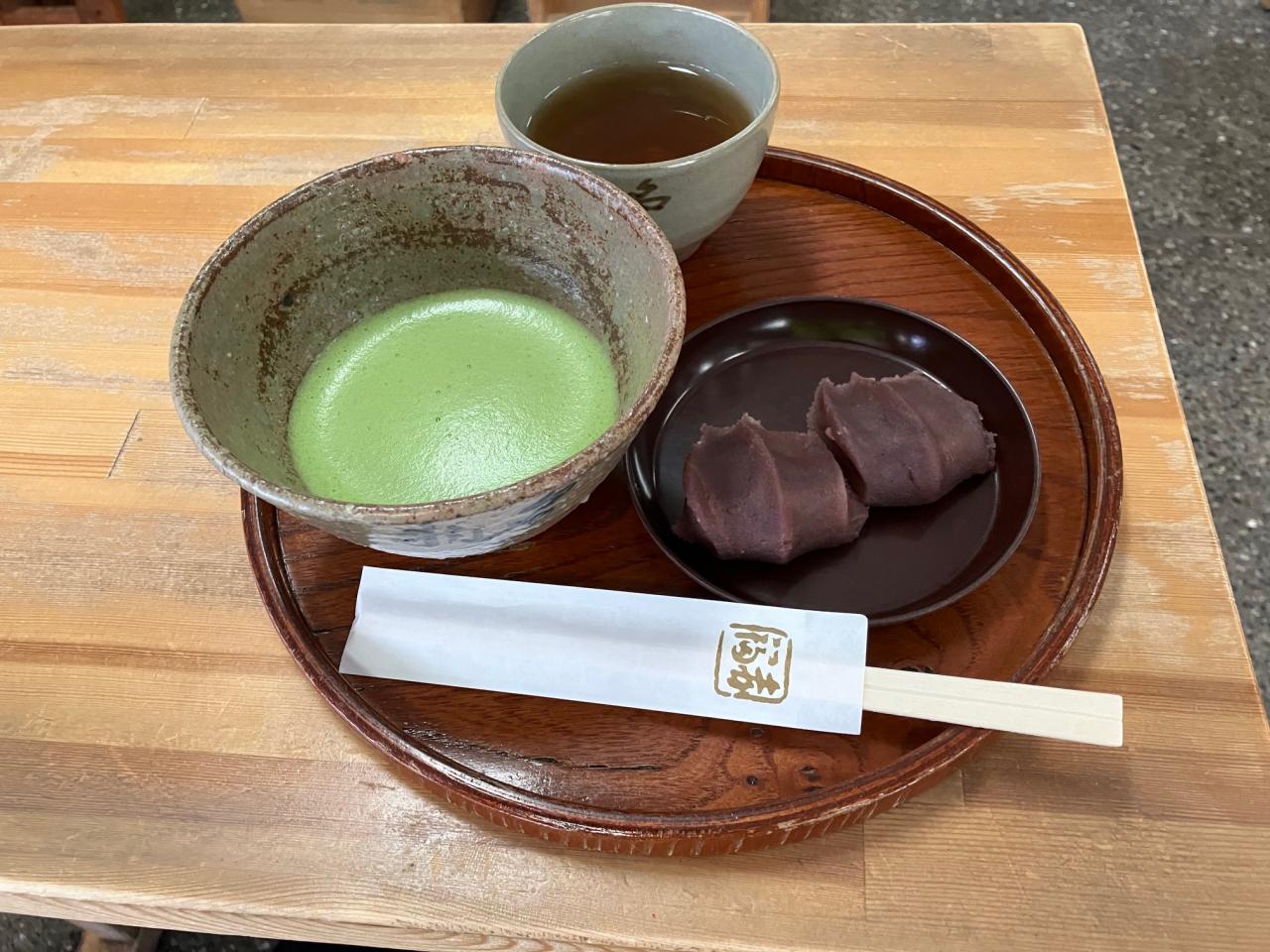赤福、私の大好物なのですが、作りたての赤福はさらに美味しい!しかも、抹茶と合います。値段は800円でした。 -