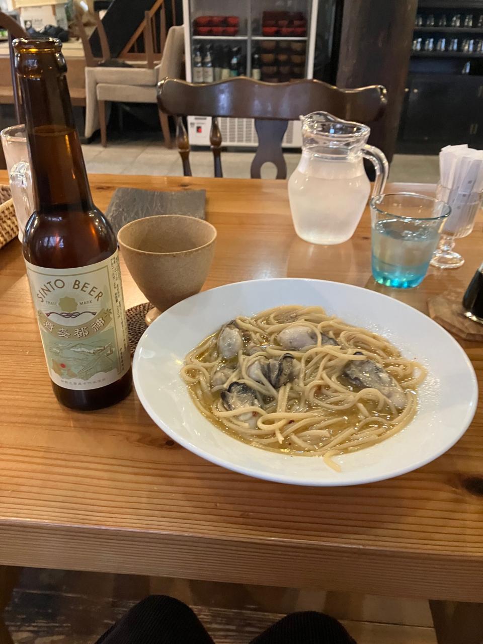 かきのペペロンチーノと神都ビール
