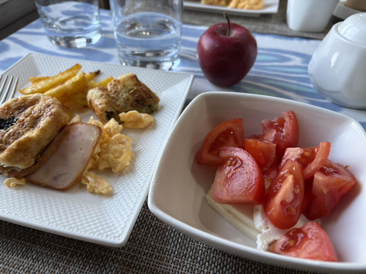 夕食はホテルの部屋にルームサービスのメニュー表があったので、頼もうとすると、シーズンオフでやってない、との事。