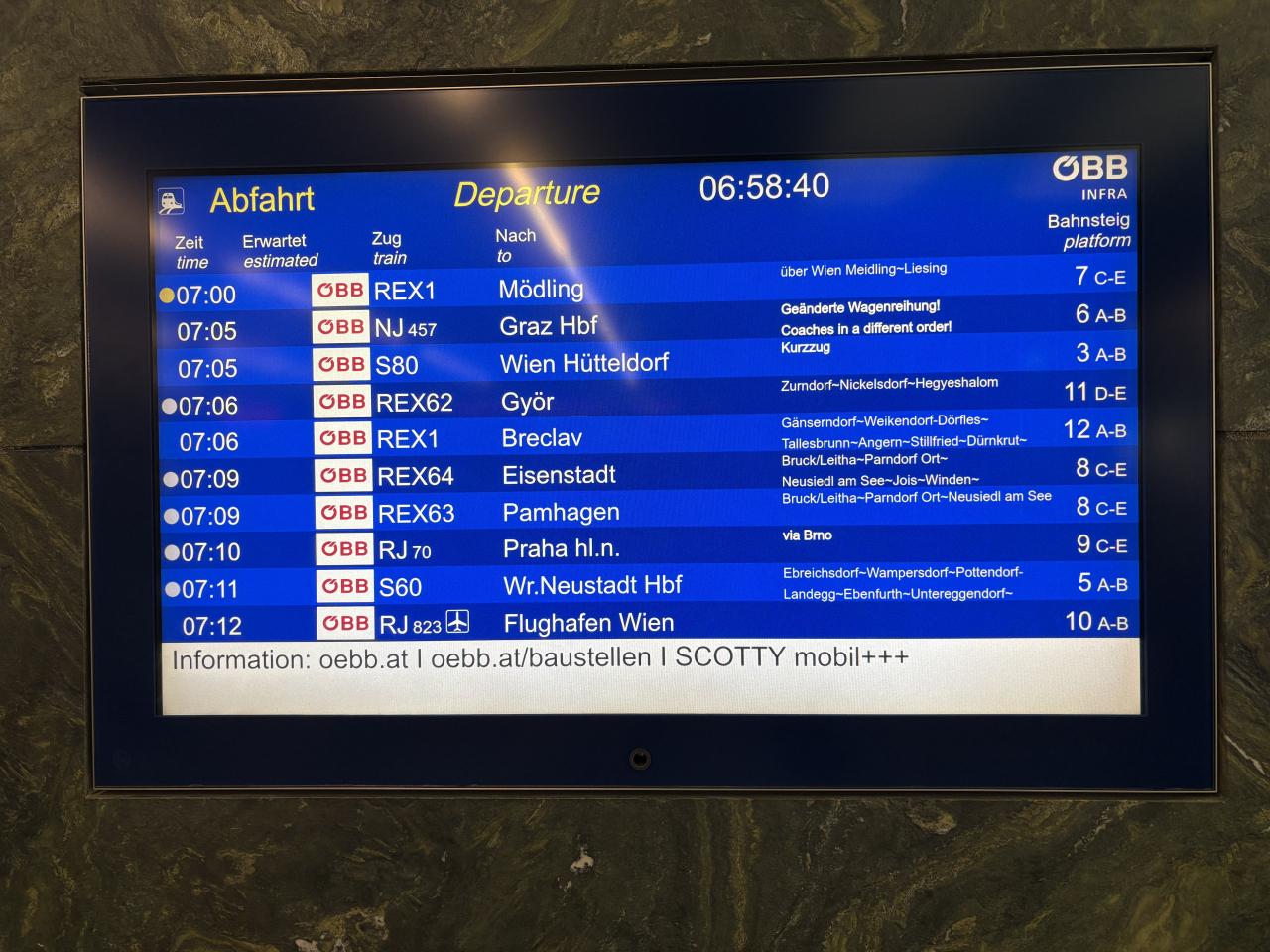 朝の7時にはウィーン中央駅に着いていました。