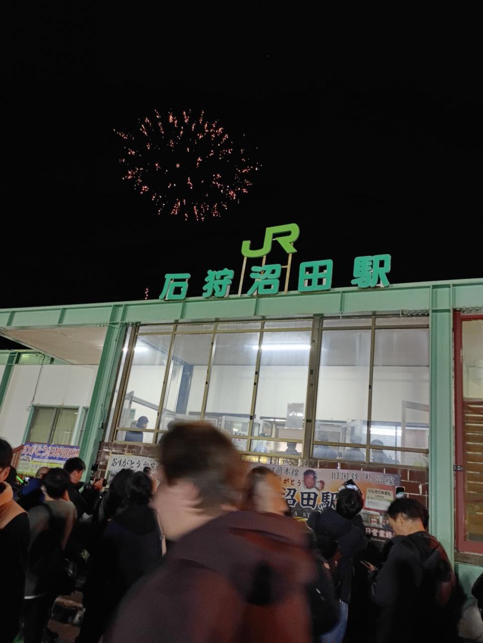駅では地元の有志がブラスバンド演奏をしていた。「旅立ちの日に」が流れていた。21:11の定刻時間は過ぎていたが汽笛とともに石狩沼田駅を出発した。