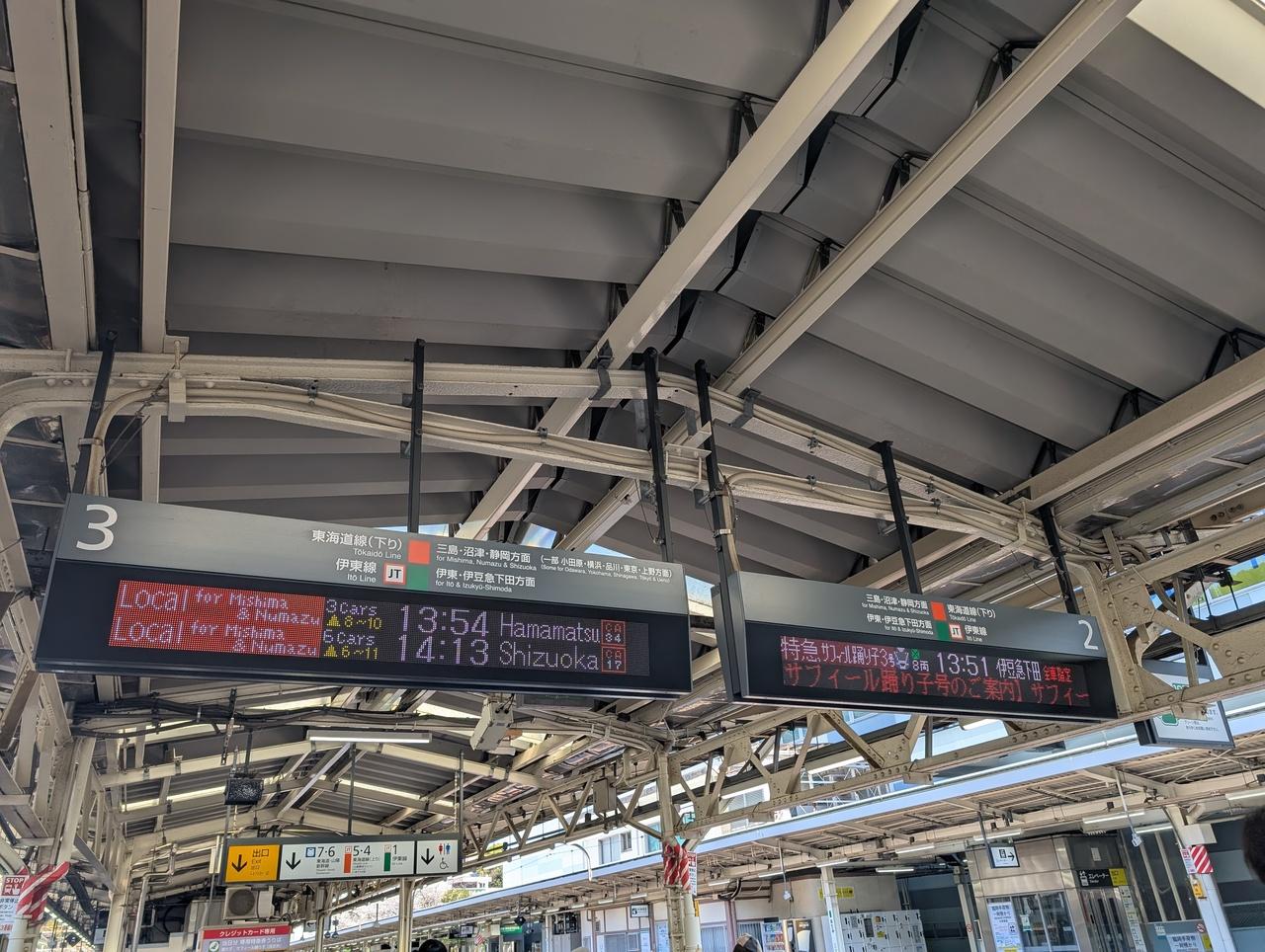 熱海は電光掲示板職人の方がいらっしゃることで有名ですね。この日も「サフィール踊り子」の絵が表示されていました。熱海駅 駅